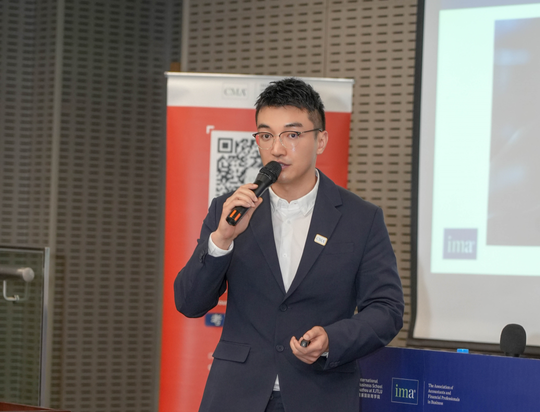 签约仪式当日,一场聚焦“AI赋能管理会计职业发展”的思想盛宴同步启幕。IMA特邀三位具有行业标杆意义的CMA持证者走进西浦商学院讲堂,通过主题演讲与圆桌对话,为现场师生以及嘉宾解码数智化浪潮下的财务人才进阶密码。老虎表面技术新材料(苏州)有限公司首席财务官赵士豪先生为与会者剖析了《AI时代下,企业眼中的财务人才》。CMA苏州精英俱乐部主席许秋迪先生带来了题为《以终为始:管理会计在职业跃迁中的三级跳》的主旨演讲。圆桌交流期间,西浦商学院会计学本科项目专业负责人左凌燕博士担任主持,与西浦商学院会计系副主任郭剑光教授、喜利得(中国)商贸有限公司信用经理张佳凯先生(CMA)与两位主讲嘉宾,共同围绕《财务人的“反脆弱”设计:用AI构建护城河》的主题,探讨复合型管理会计人才在当前经济环境下的重要性。