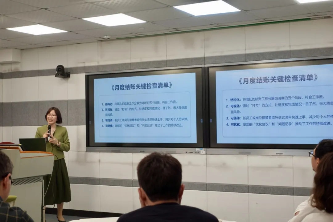随后,资深培训专家于秀勤老师围绕《财务人的经验萃取之路》展开分享。她针对财务人员普遍面临的“经验难以传承、价值被误解、个人品牌受限”等现实困境,系统介绍了经验萃取的实战方法论,包括构化思维、价值翻译、成长路径等;结合真实案例,生动演示了如何将常见的财务管控难题,转化为逻辑清晰、可复用的培训内容,并现场提供了“财务经验价值初判清单”等实用工具,助力财务人员有效突破职业瓶颈。